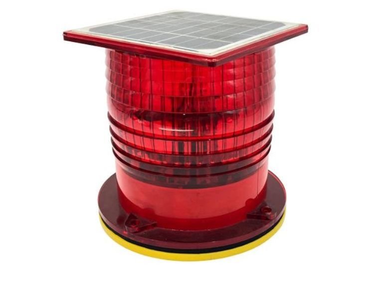 Luces de obstrucción con paneles solares fabricados con oblea de silicio monocristalino de alta iluminación y sellado de vidrio templado con bajo contenido de hierro, con alta estabilidad y larga vida útil. Usando una batería de fosfato de hierro y litio para almacenamiento de energía.